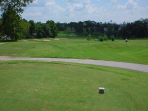 This is a short par 4 but very tight. There are trees to the left and right the entire length of the hole. A small green that banks to the right.