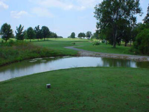This is a tough hole to start out with because of the length and the water. Starting from an elevated tee, there is water on the left and fairway bunkers and trees run down the right. A large green ridge runs through the middle of the green with a bunker on the left.